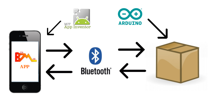 El projecte tracta de fer una aplicació que es connecti amb una capsa (un dispensador de pastilles per a persones grans) via Bluetooth i que indiqui que la persona gran s'ha de prendre la o les pastilles. Aquest seria l'esquema del seu funcionament: