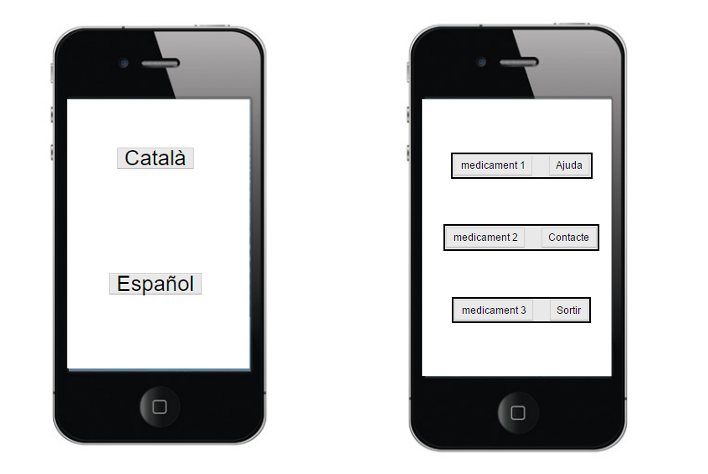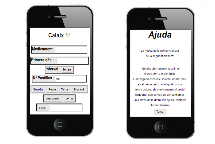 -Després tenim el menú (on podem omplir la informació sobre els medicaments, veure els nostres contactes i demanar ajuda).